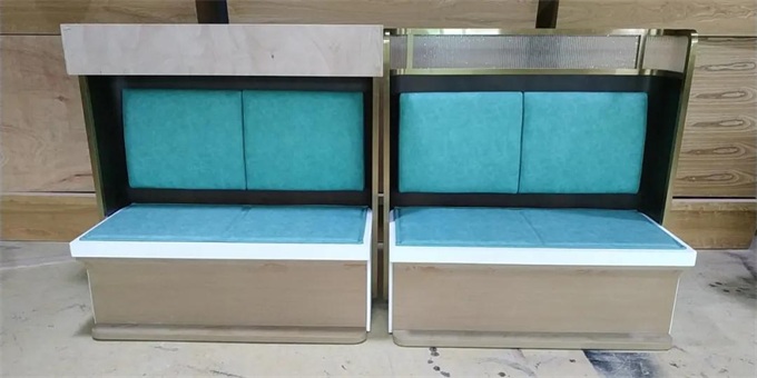 不銹鋼卡座框架上面用亞克力裝飾,使得每一張卡座的弧度顯得很柔軟,貼身的皮革軟包,讓整個卡座很有貴氣。